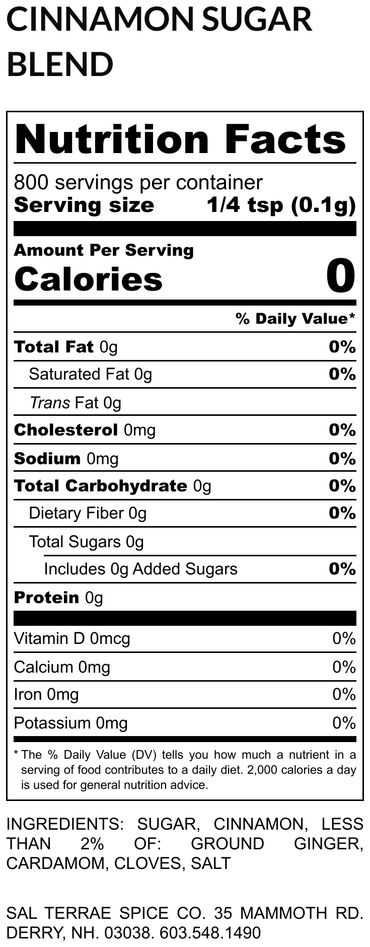 sugar, varietal cinnamon blend, ginger, cardamom, clove, salt