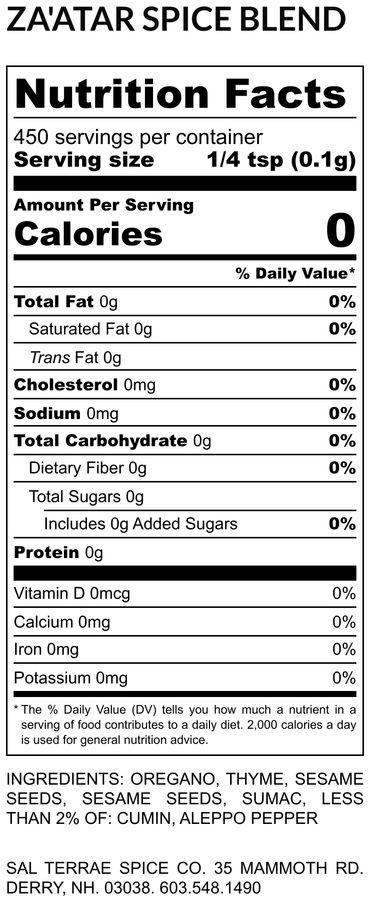 oregano, thyme, salt, sesame, sumac, cumin, Aleppo pepper
